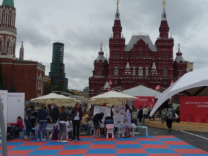 Una biblioteca volante si presenta e accoglie i tanti curiosi. Un luogo che assomiglia all’Arca di Noé, un padiglione con libri e computer. In occasione dell’inaugurazione è stata ricordata la storia mistica della biblioteca perduta di Ivan il Terribile, che aveva circa 800 tomi, tra cui alcuni bizantini. Molti governanti fino al XX secolo hanno cercato senza successo di ritrovarla. Del resto la prima biblioteca pubblica in Russia è stata aperta proprio qui sulla Piazza Rossa, nella Cattedrale di San Basilio. Con il permesso di Pietro I, nel 1705 venne costruito un edificio, dove si poteva bere tè e caffè, e, allo stesso tempo, comprare un libro.